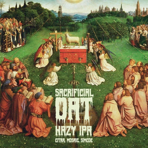Sacrificial Oat is an oblation for us lowly creatures. This consciousness-altering 6.66% ABV Hazy IPA bleeds pineapples, passionfruit, and citrus from its accursed share of Citra, Mosaic, and Simcoe hops. Sacrificial Oat has the fluffiness to carry you to the heavens as well as the sharp-tongued liturgies our cult of West Coast heretics demand.